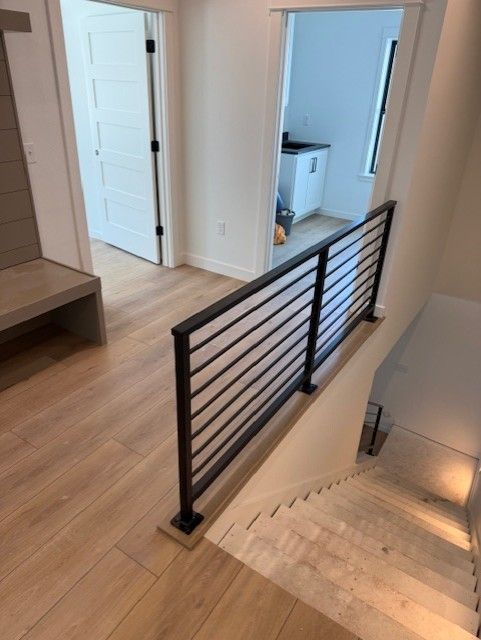 Our team of experts can custom fabricate any railings that are not only modern and trendy, but also built for endurance. Most of these modern railings are made with 1 1/2”-3” square tubing and spindles are often made with 1/2” – 1.5” tubing laying either vertical or horizontal. Although these are the most common sizes, we are always open to other suggestions to help the customer bring their ideas to life! All railings are powder coated to ensure they withstand even the harshest of environments!